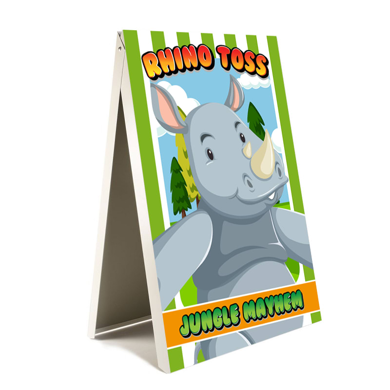 Our Jungle Fairground games have gone down a treat with all our amazing Jungle parties which we have helped host with our awesome jungle range across Stourbridge and surrounding areas of the West Midlands. Unlike our Monkey Toss and Elephant Toss our Rhino asks you to test your skill at hoopla. You and your little ones can take it in turns to try to hoop the quoit over the Rhino Horn.