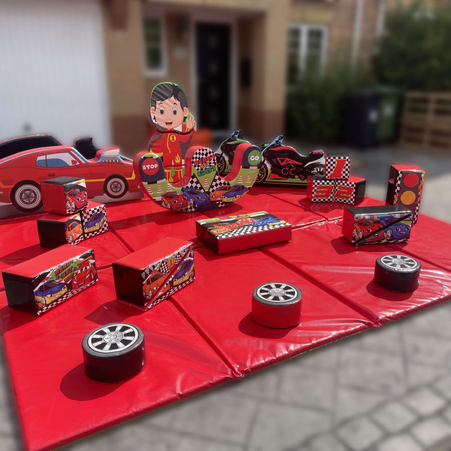 It's time to hit that gas pedal as your little ones party reaches full speed. Only there are no twists and turns to finding the right package. Our Raceway Soft Play Package has everything you need to hire in one to host the ultimate racing car themed party. Your little driver can drive and splash around in their very own Hot-Rod Soft Play Ball Pool, ride away on our soft play motorbikes, step along tyres in the pitstop with our stepping stones and even build their very own racing car driver with our stackable - this package is fuelled full of fun!